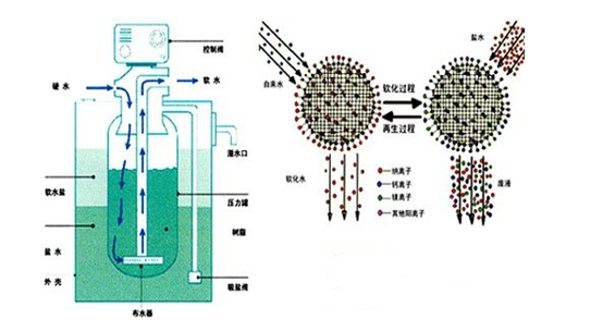 陽離子交換樹脂上的官能團置換溶解在水中的鈣和鎂的硬礦物質。鈉在很大程度上消除了表面上的水垢積累,從而大大降低了對其接觸的目標的傷害。在合適的容器中,含有硬質礦物質的水通過陽離子交換樹脂進行離子交換反應。