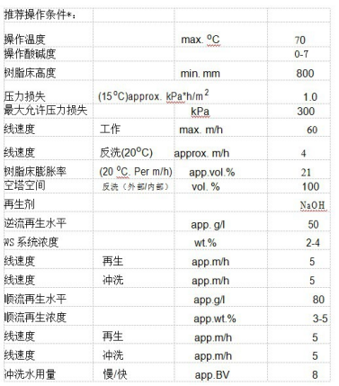 電泳漆樹脂使用參數條件如下所示,不同品牌的電泳漆交換樹脂,對于使用參數有一些些細微的差別,在實際使用需要根據商品要求和實際產水進行調整。