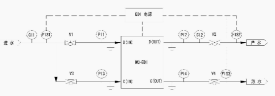 蘇伊士EDI工藝在工業(yè)超純水生產(chǎn)中的工藝流程圖如下所示: