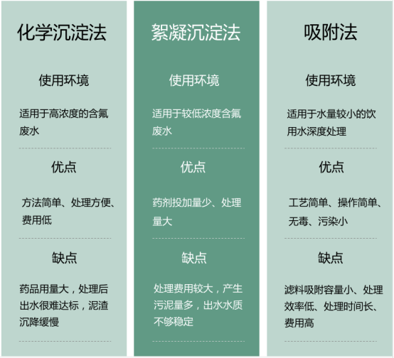 鑒于含氟廢水在種類、數量、氟含量及其它的污染物等方面差異甚大,因此在選擇處理方法時,要根據實際情況,因地制宜。