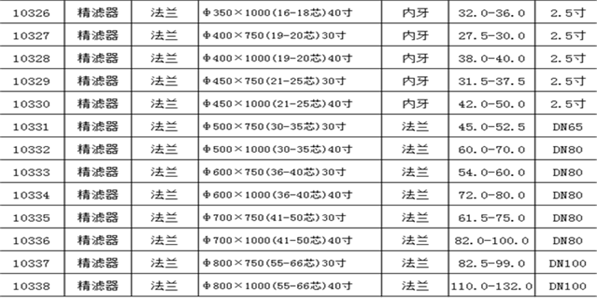 過濾精度:0.5μm--100μm