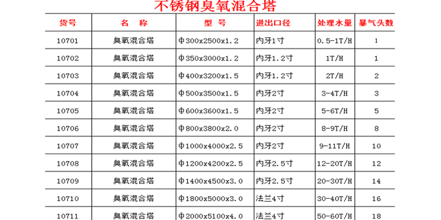臭氧混合塔材質:1、不銹鋼304 2、不銹鋼316