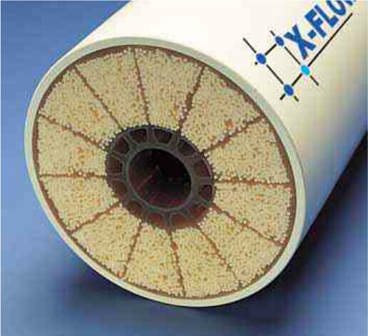 諾芮特®膜采用內壓式過濾(即水從內向外流動),這樣保證了被膜截留的物質非常容易通過反洗,或者化學加強反洗去掉。內壓式過濾的另外一個優點是,保證進水不會與膜的外表面接觸,從而保證污垢不會在膜絲之間堆積。一旦污垢在膜絲之間堆積,這部分污垢是相當、有時甚至是不可能被去除的。