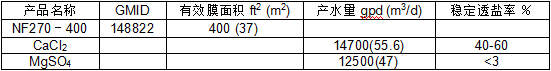 500ppm CaCl2, 70psi(4.8Bar), 25ºC, 15%回收率。