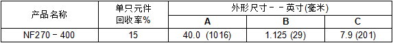 1. 回收率指產品水流量除以給水流量的百分比值。 1英寸=25.4毫米