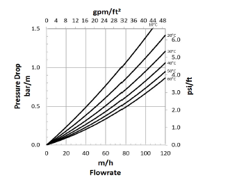 下圖顯示了杜邦AmberLiteHPR9000 OH凝結水拋光樹脂隨流量和溫度而變的估計壓降。