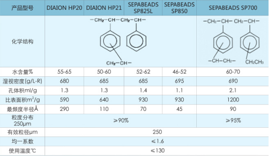3、芳香族系:SEPABEADS SP70符合美國FDA標準 的芳香族系大孔吸附樹脂,具有中等的細孔徑。