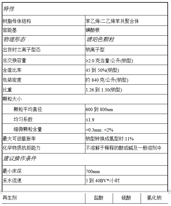 AMBERLITE IR120Na是一種磺酸化苯乙烯系凝膠型強酸性陽離子交換 樹脂。適合用于軟化(鈉離子型)及順向再生純化系統(氫離子型),具有極佳的物理、化學及熱穩定性,良好的離子交換能力。