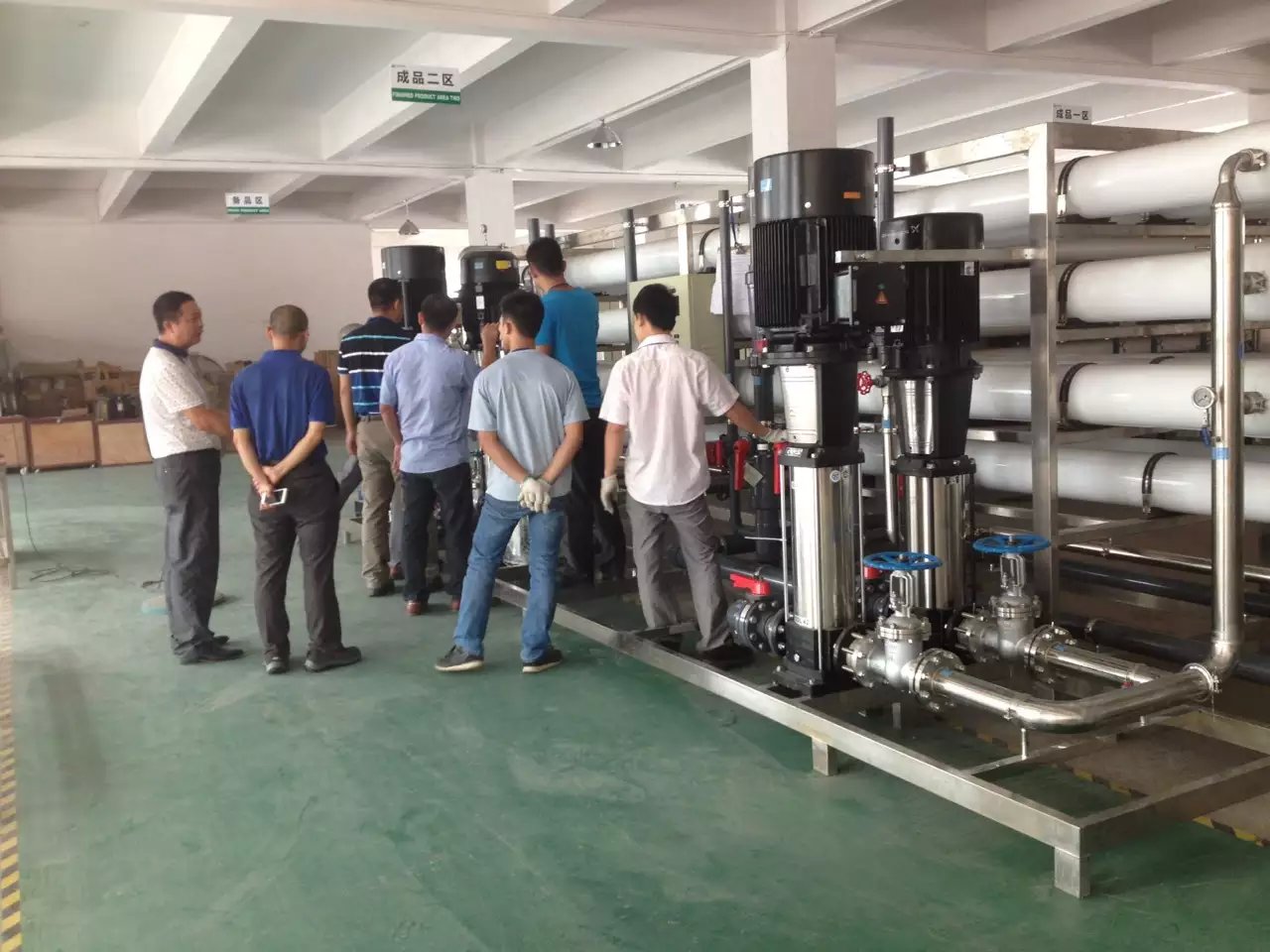2、原水→增壓泵→精砂過濾器→活性碳過濾器→軟水器→反滲透主機(jī)→紫外線殺菌器→純水箱→用水點(diǎn)(推薦工藝電導(dǎo)率≤10μS/CM)