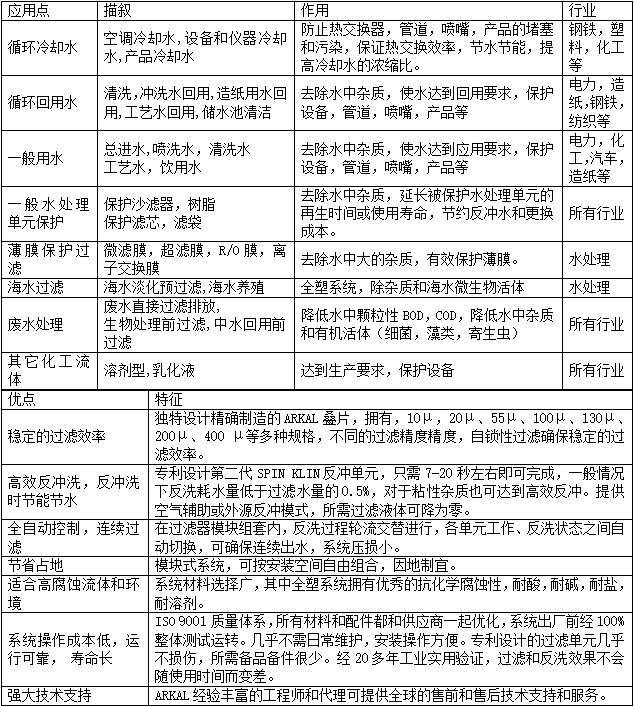 SPIN KLIN 疊片式自動反沖洗過濾器的優點