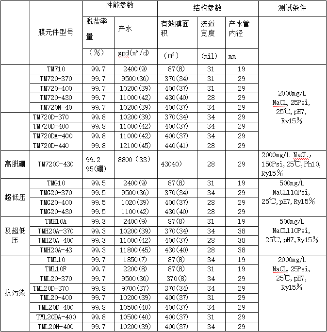 東麗反滲透膜元件具體有哪些型號呢,下面小編清晰的列出了這些常用型號,以便大家進一步了解并有助于大家更方便選型: