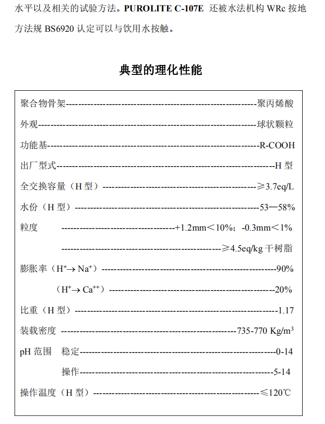 漂萊特Purolite® C-107E食品級軟化樹脂還被水法機構WRc按地方法規BS6920認定可以與飲用水按觸。