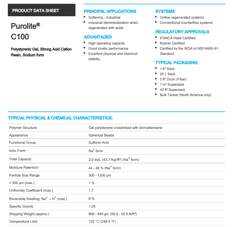 英國(guó)漂萊特Purolite C100強(qiáng)酸陽(yáng)離子凝膠型樹(shù)脂參數(shù)、價(jià)格