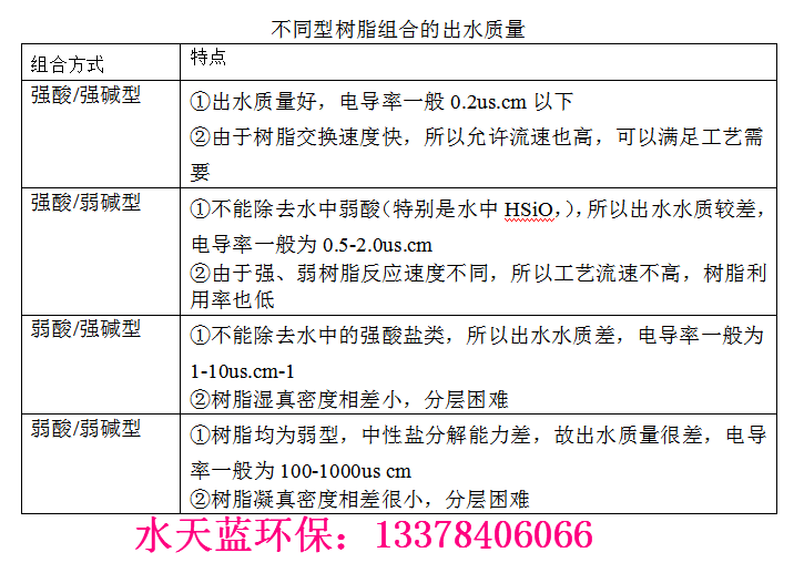 不同的樹脂組合出不同的出水質量請看下圖: